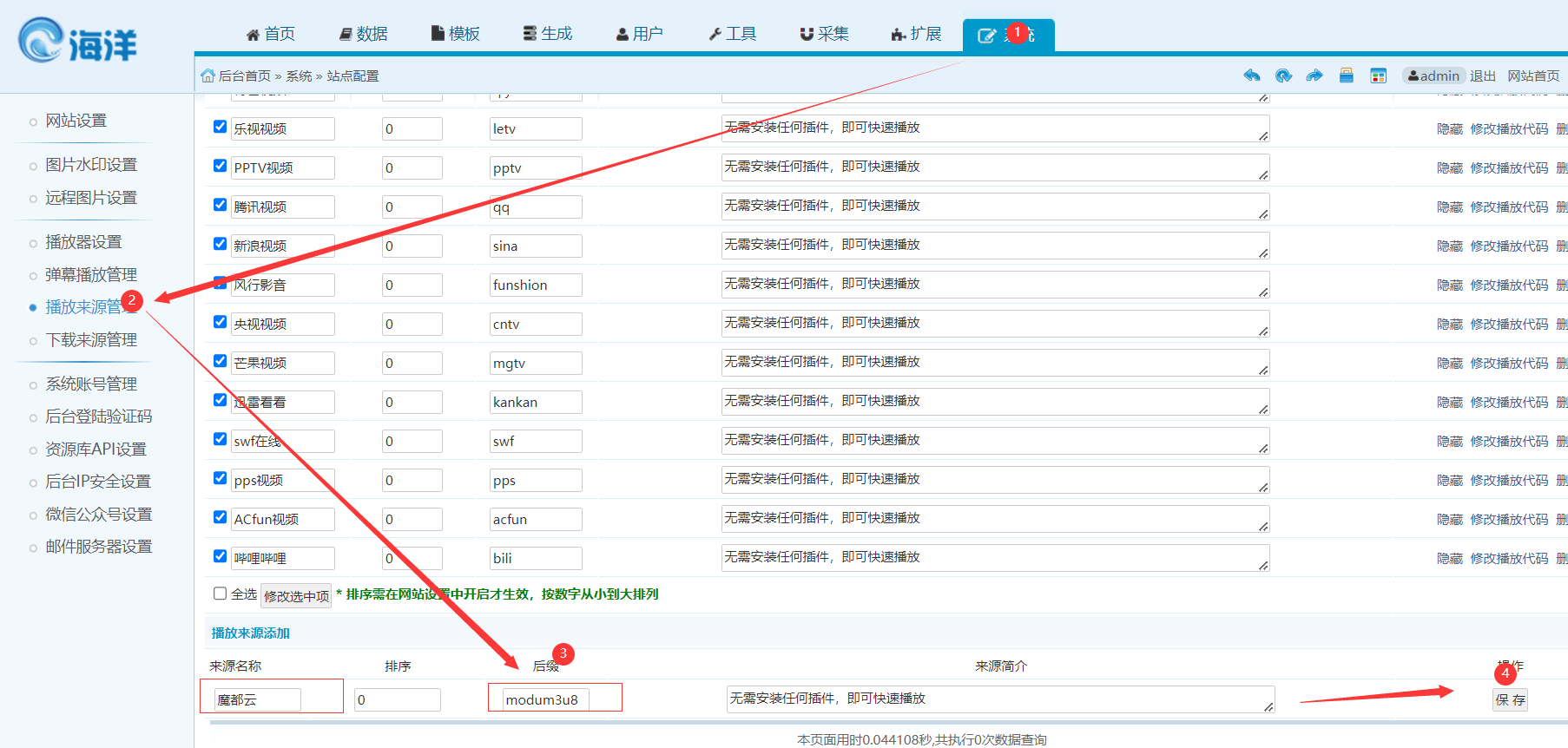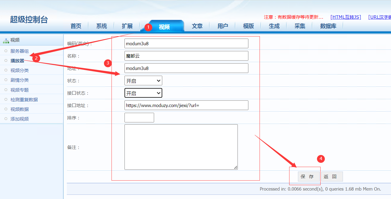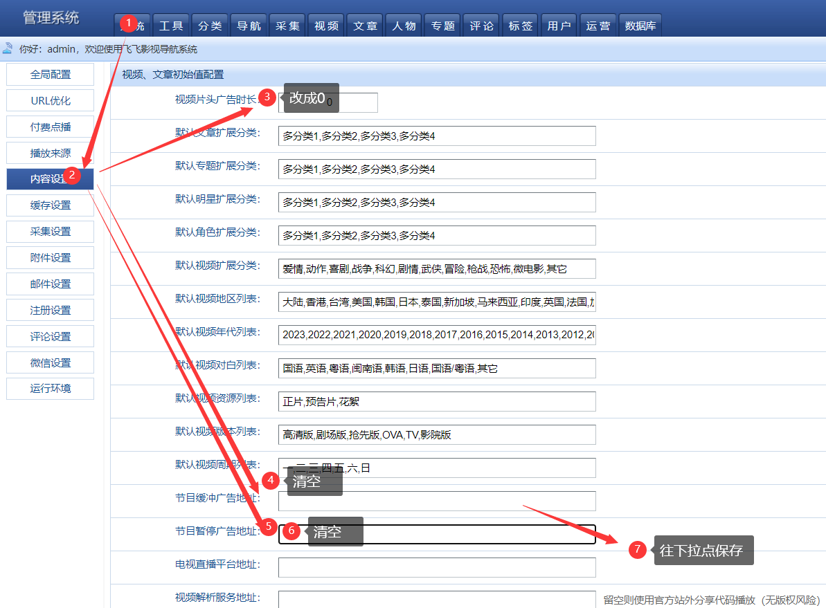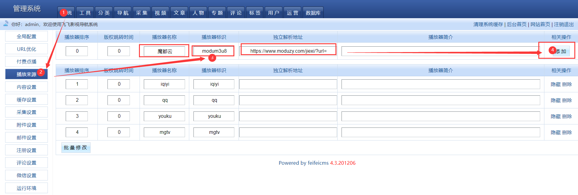 但是可能依旧不能播放,下载解析包替换Public\player目录中的文件即可【点击下载】另因为飞飞CMS默认为云解析,可能不支持我们的资源,需要如下设置