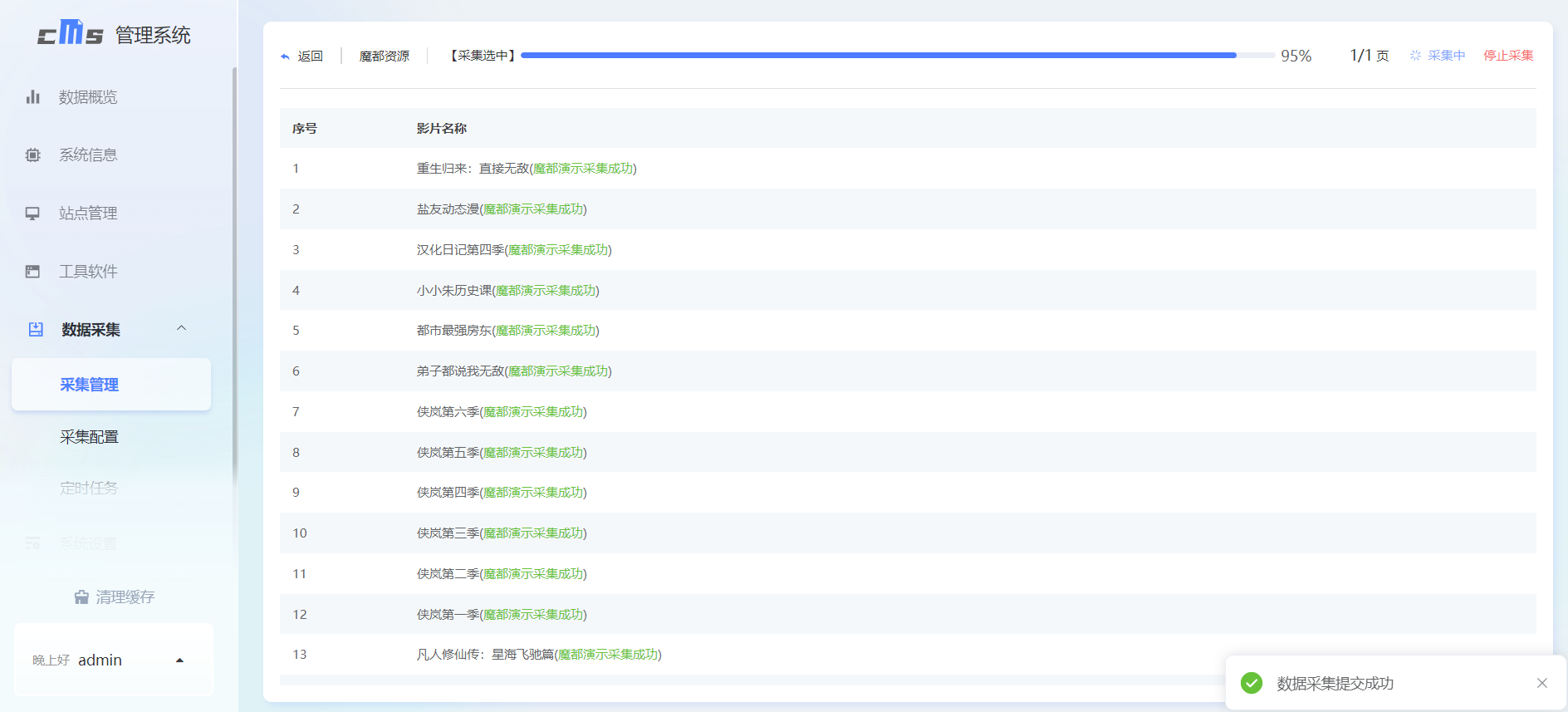 本站采集插件已经完美适配飞飞cms最新版,支持M3U8在线播放,快速更新,稳定播放!